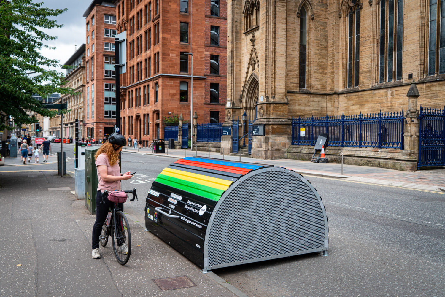 Earlier this year, Cyclehoop won a tender to bring a secure, short term cycle parking solution to Glasgow city centre. Funded by the Sustrans ‘Places for Everyone‘ initiative, it forms part of Glasgow City Council’s Avenues Project.