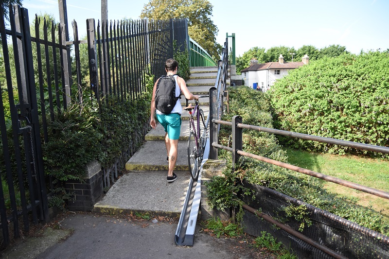 “We are delighted to work with Hackney and Waltham Forest council in launching this new product. On one side of the bridge, we were able to install the ramp to follow the curved staircase which would otherwise not be possible with traditional steel channels. The sections could be cut and fitted on site without requiring custom fabrication in the workshop, making it very easy to install.The ramp was an immediate hit and it was great to see it being well used. I saw tourists pushing heavy Santander bikes up the ramp as well as bicycles laden with panniers or mothers riding their bike with children on the child seats!”.