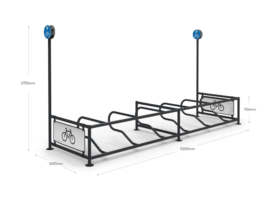 At 5260mm wide, the twelve space standard configuration fits in the footprint of a regular car parking bay; ideal for carriageway installation.