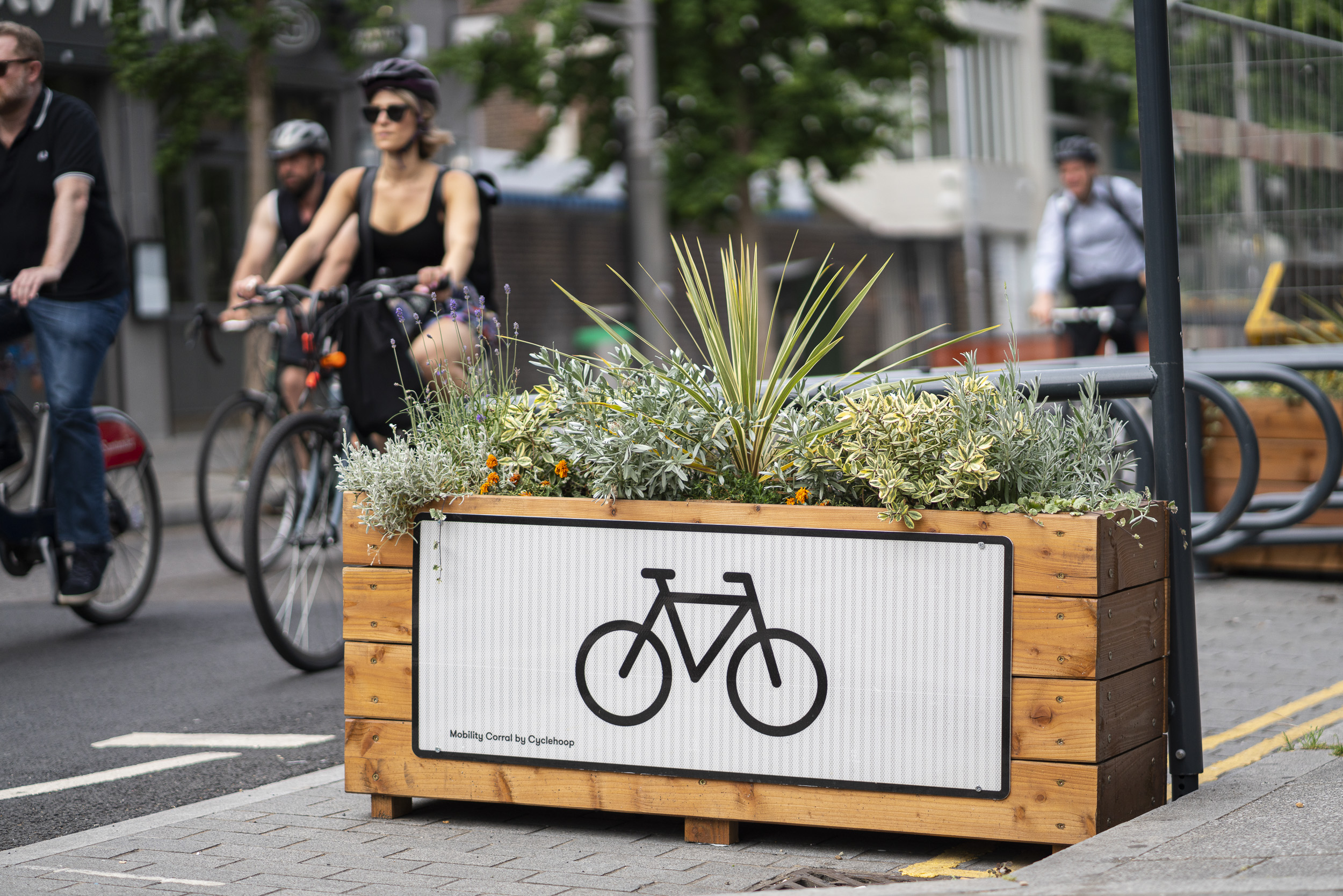 The provision of safe and sustainable transport infrastructure is really important to the vibrancy of the West End. The new Mobility Corrals protect cyclists and bikes from road traffic, are made of recyclable materials and include planters to introduce greenery and biodiversity to the streets.