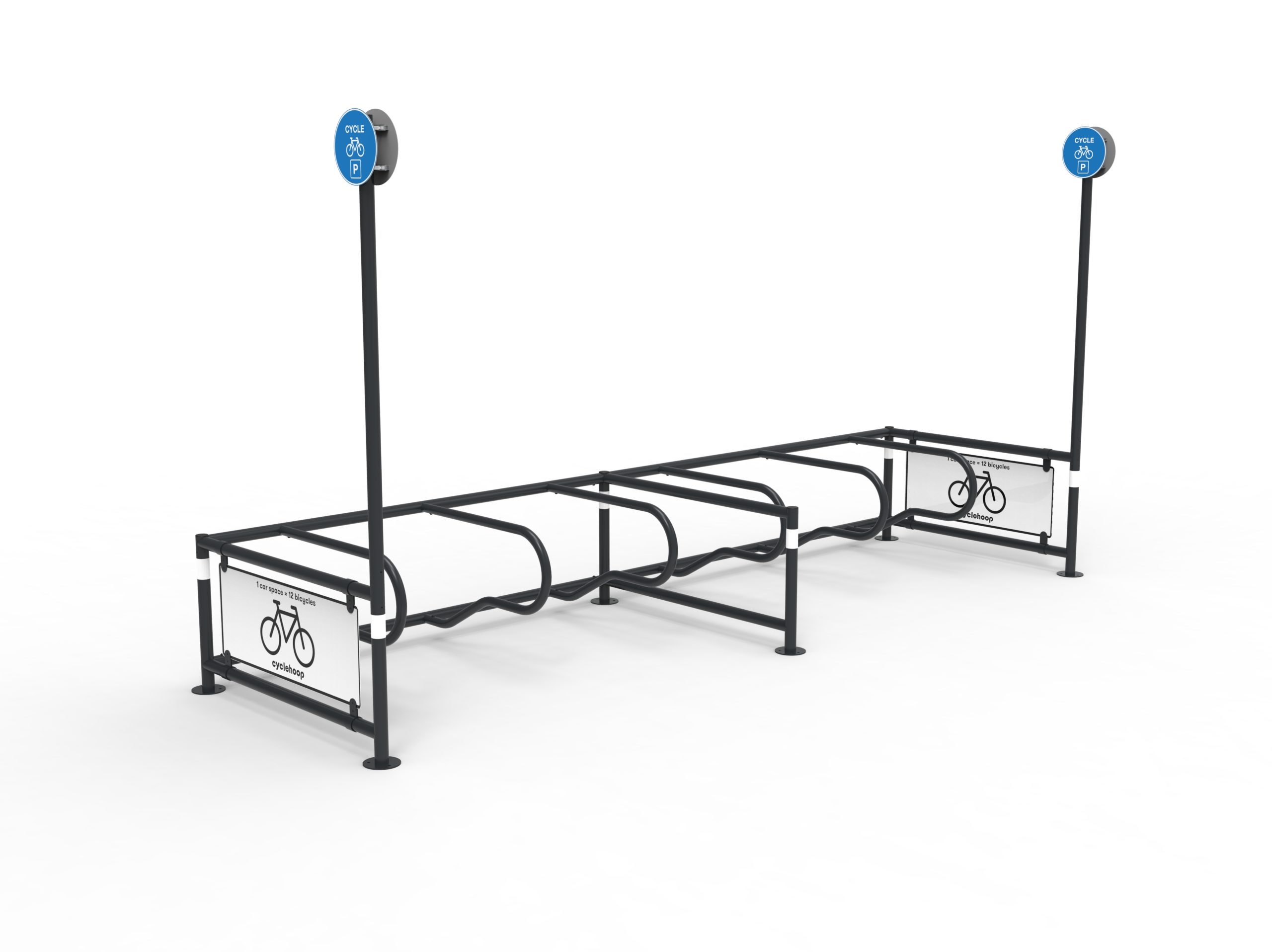 At 5260mm wide, the twelve space standard configuration fits in the footprint of a regular car parking bay; ideal for carriageway installation.