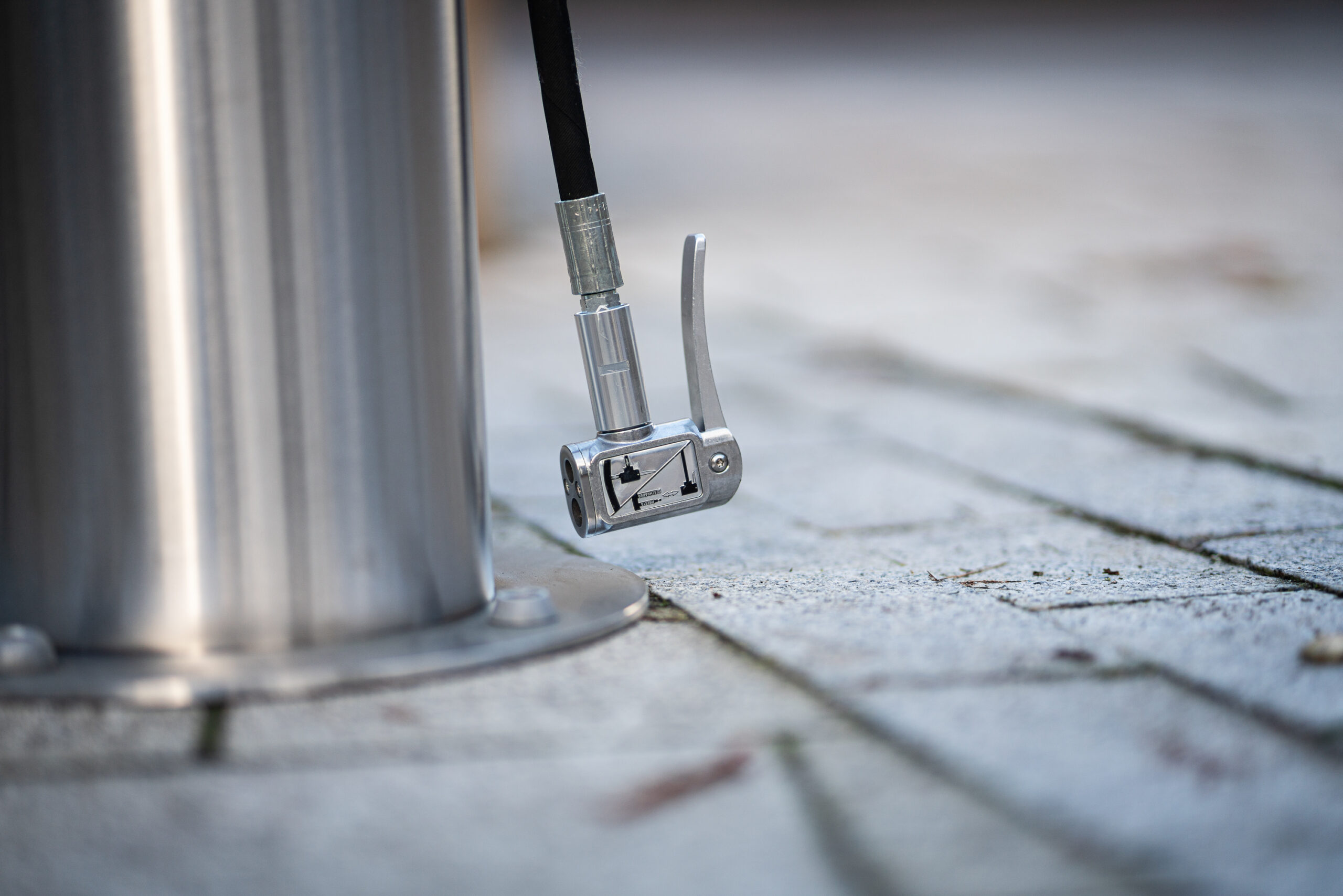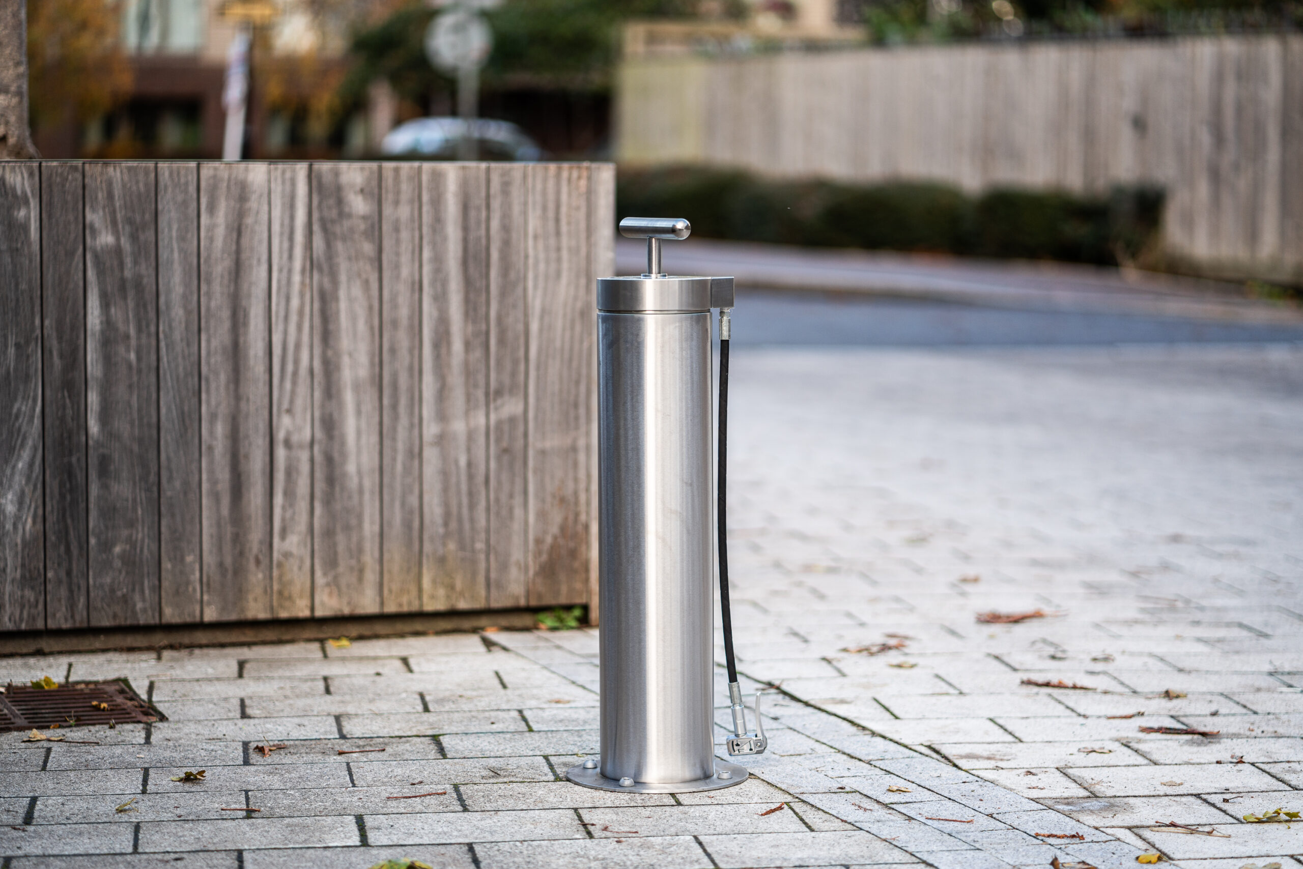 The Public Bike Pump is built for continuous use in outdoor public environments. The robust stainless steel bollard style construction is corrosion resistant, fully weatherproof and highly resistant to damage.