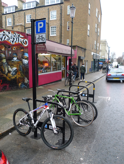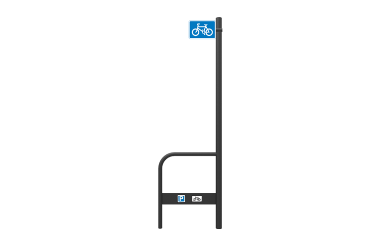 This bike stand has the classic Sheffield Stand shape with tapping plate to help the visually impaired identify the presence of the bike stand. This sturdy bike stand comes with an integrated sign post, reducing the risk of cars reversing into the stand.