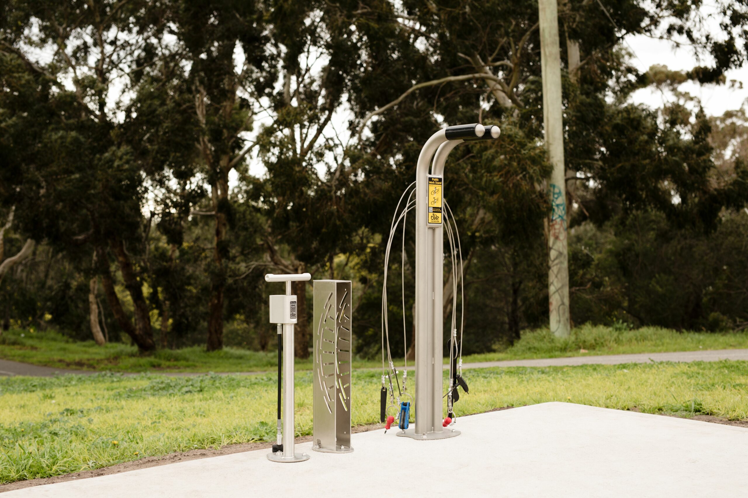 The Wheel Holder holds the bike in place by the wheel, leaving space for repairs and maintenance tasks. Combined with the Deluxe Public Repair Station, the Wheel Holder is perfect for heavier bikes such as e-bikes that can’t easily be lifted onto a repair stand, or for bike frames with no horizontal top tube that can’t be hung from a stand.