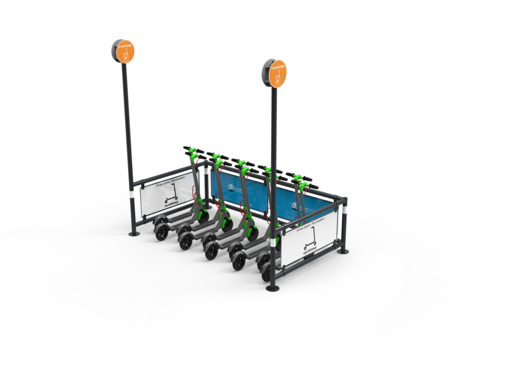 Mobility Corrals don’t just cater to standard cycles. The one system can provide parking for a range of micromobility types including shared e-scooter or cycle schemes, family bikes and cargo bikes.