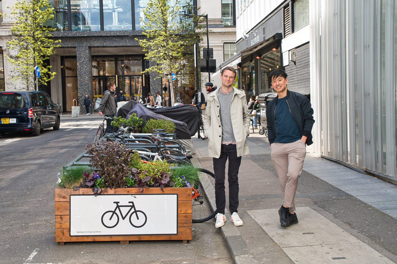 “The new Mobility Corrals protect cyclists and bikes from road traffic, are made of recyclable materials and can include planters to introduce greenery and biodiversity to the streets”.