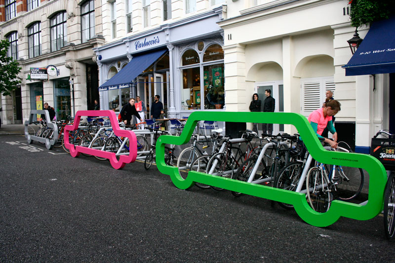 In order for people to have an incentive to use cycle parking, it needs to offer a real advantage over the location of the nearest car parking space. Ultimately, people are going to tend to use what is most convenient for them. Good cycle parking will be as close to the destination as possible, and it will be free of charge where possible.